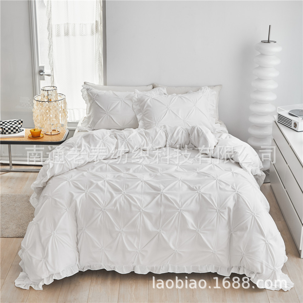 跨境外贸速卖通亚马逊揪花素色纯色荷叶边花边床上用品3D立体套件