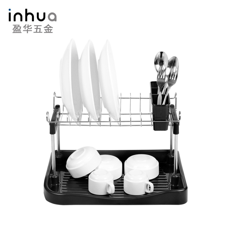 盈华厂家加工定制双层厨房沥水架简约餐具收纳干燥架带刀叉小胶杯