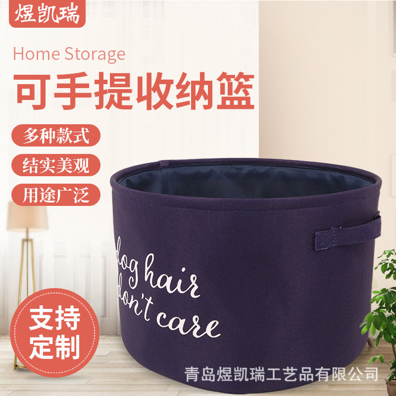 厂家供应帆布收纳筐 家用杂物内衣整理玩具收纳筐手提束口收纳篮
