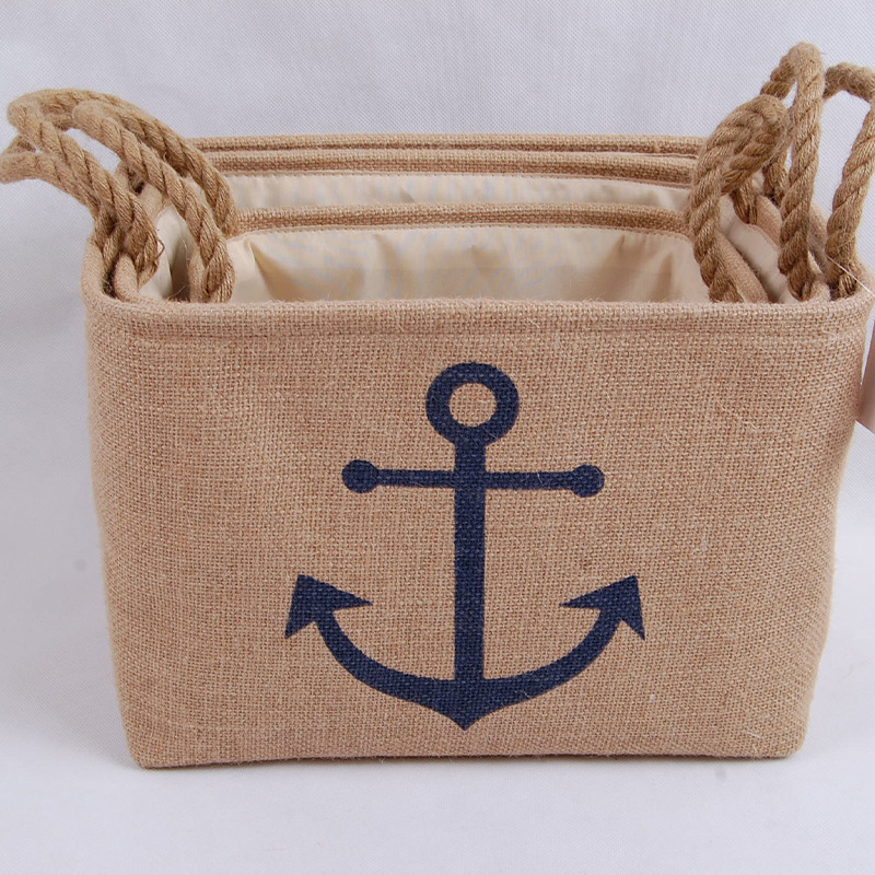 ins风家用杂物收纳筐黄麻材质内衣袜子整理箱防尘防潮收纳筐供应
