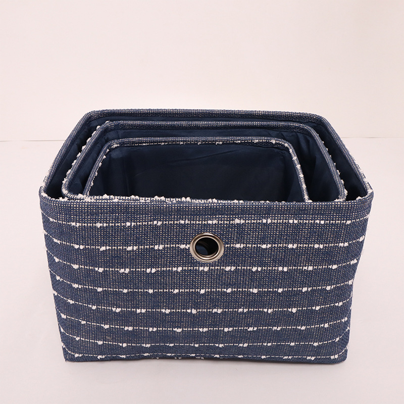 收纳篮水果面包蓝布艺收纳筐杂物整理 长方形收纳盒三件套批发