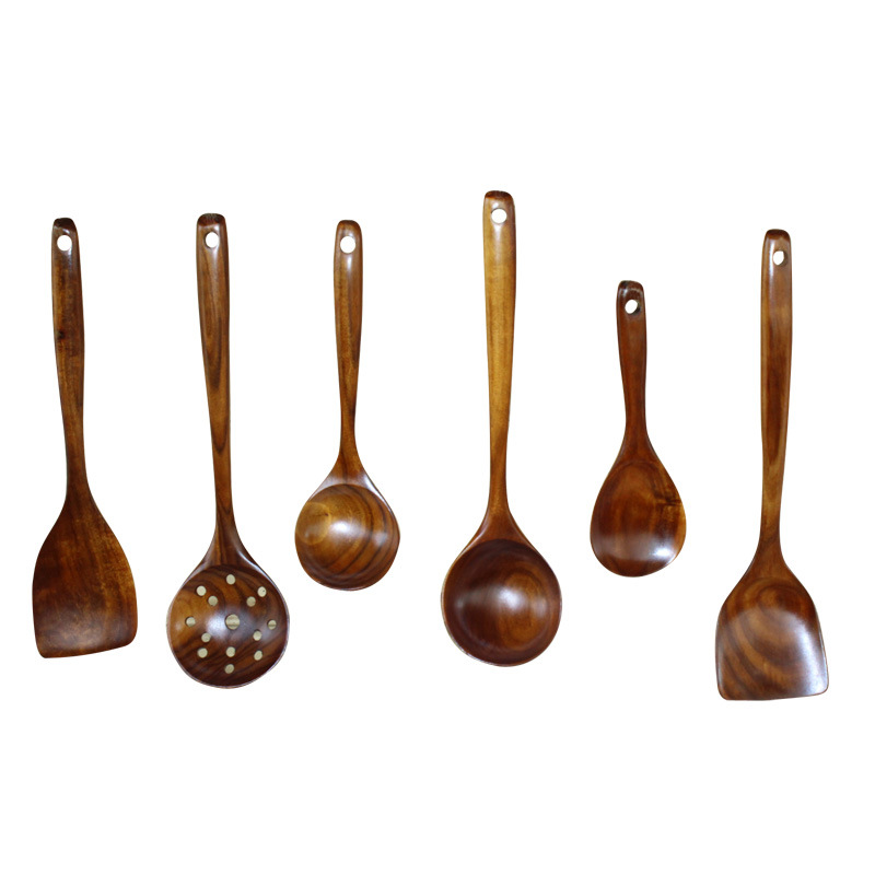 亚马逊新款黑胡桃木厨具7件套 家用木质厨房炒菜木铲木勺烹饪套装