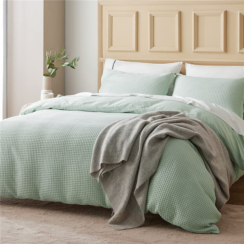 跨境亚马逊外贸北欧纯色华夫格欧美床上用品三件套被套床单外贸
