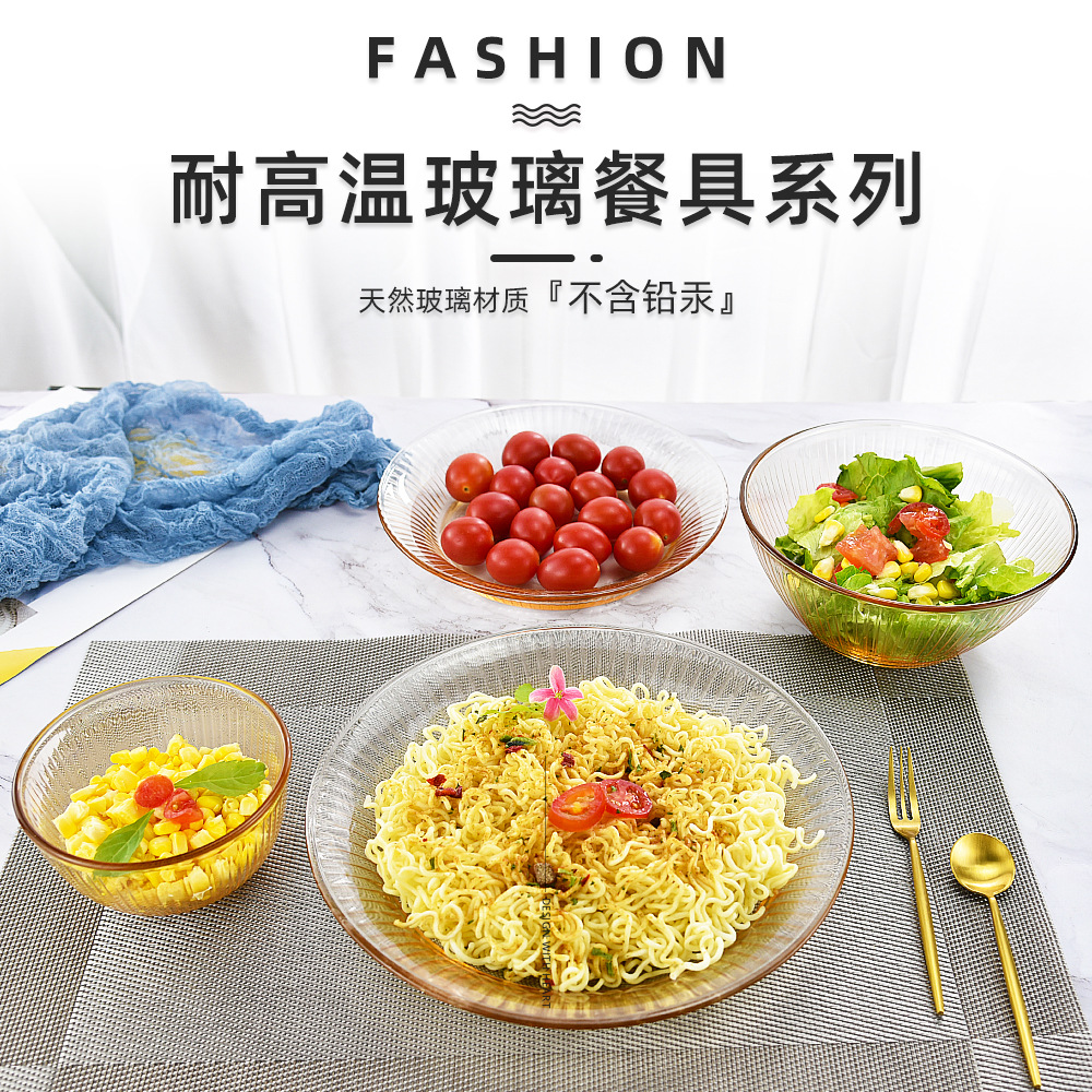 琥珀色低硼耐热玻璃餐具 现代简约家用面碗汤碗 加厚耐热沙拉碗