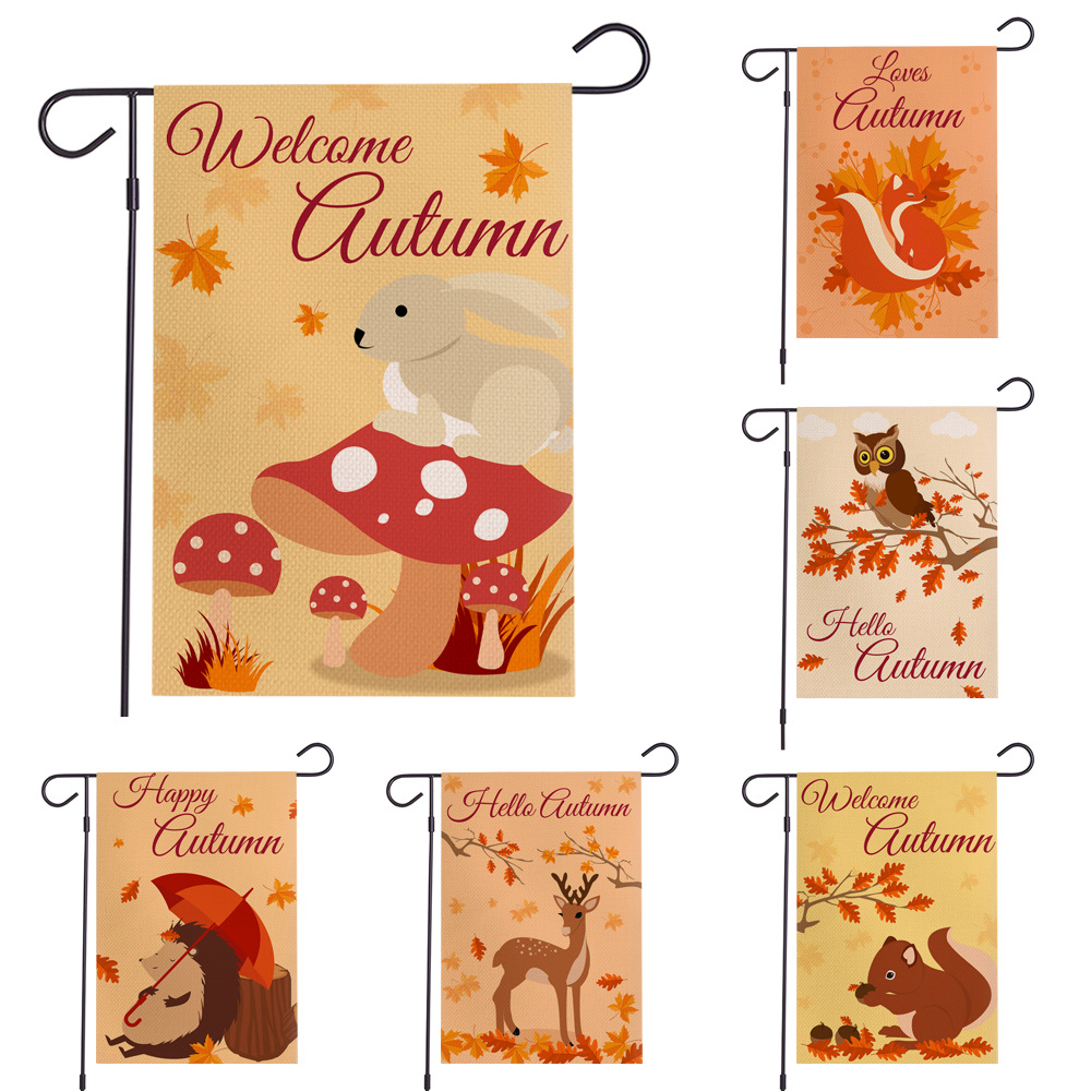 跨境热销 秋季花朵系列防水亚麻花园旗 双面庭院节日旗 支持定制