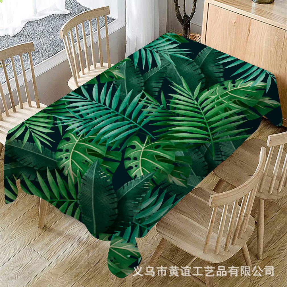跨境畅销 亚马逊简约绿色植物棉麻桌布批发 亚麻茶几台布餐桌布