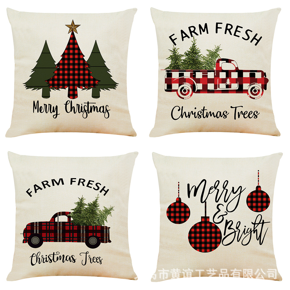 亚马逊 跨境新款艺术圣诞棉麻抱枕套 汽车抱枕家居沙发靠垫可定制