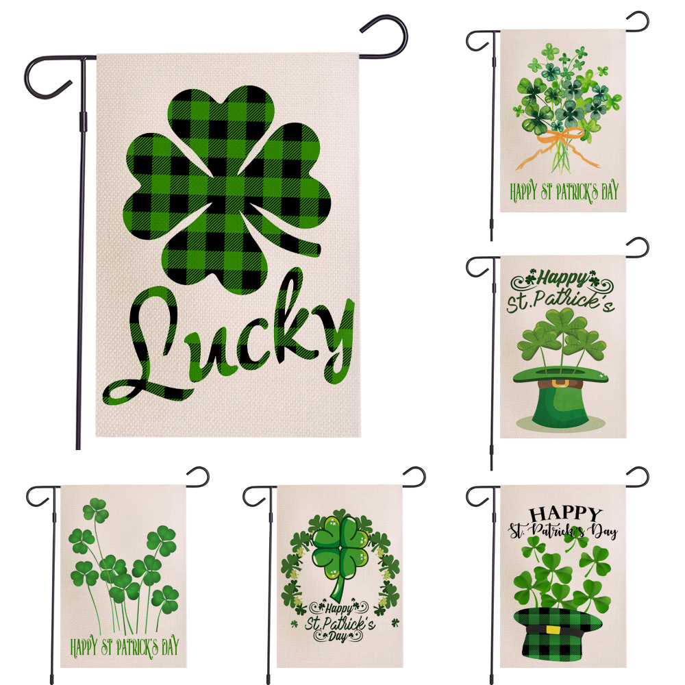 亚马逊圣帕特里克花园旗新款跨境旗帜庭院装饰吊旗防水亚麻旗子