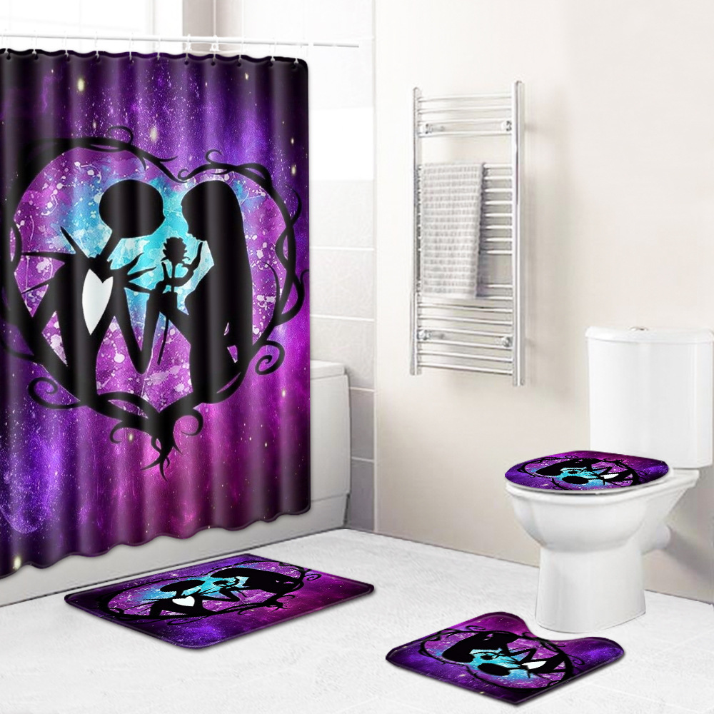 跨境热销新款创意浴室浴帘四件套地毯家用卫生间马桶防滑地垫代发