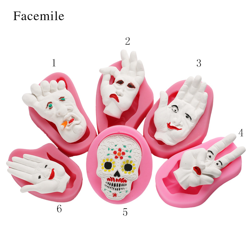 万圣节蛋糕装饰手掌怪笑脸老太骷髅头万圣节液态硅胶翻糖蛋糕模