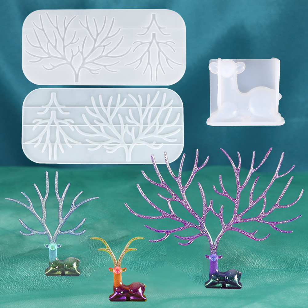 斯可diy水晶滴胶硅胶小鹿鹿角树杈镜面鹿角手工摆台硅胶模具优惠