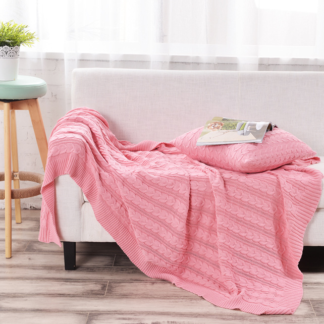 加绒麻花针织毛线毯子 办公室午休毯盖毯 纯棉沙发毯厂家直销