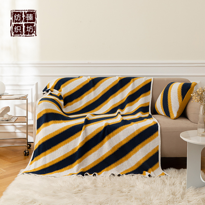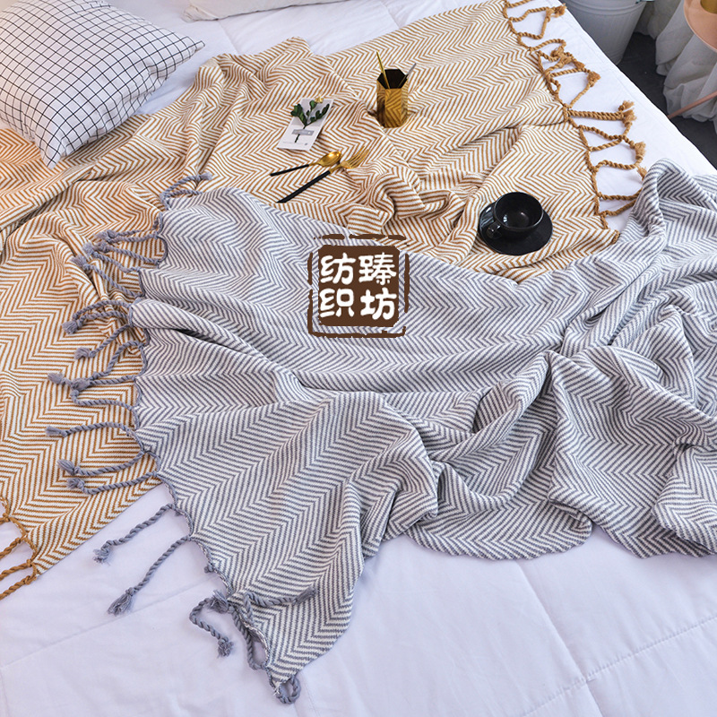 新款z字纹全棉针织线毯空调毯 办公毯子沙发盖毯 拍照道具简约风