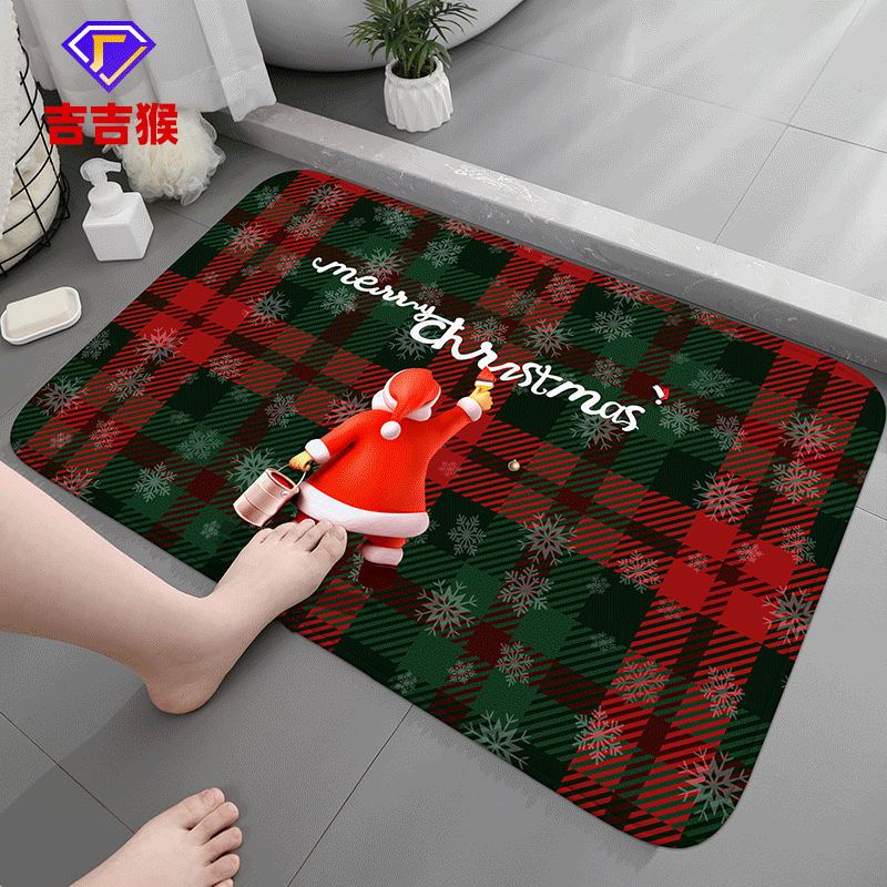 定制圣诞节喜庆绒面地垫门垫卧室浴室家居卫生间吸水防滑脚垫跨境
