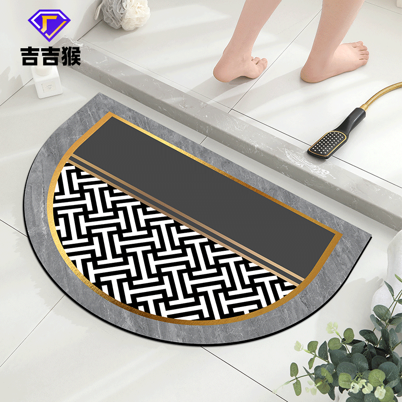 半圆形硅藻泥吸水浴室地垫卫生间入户门口地毯卫浴厕所防滑软脚垫