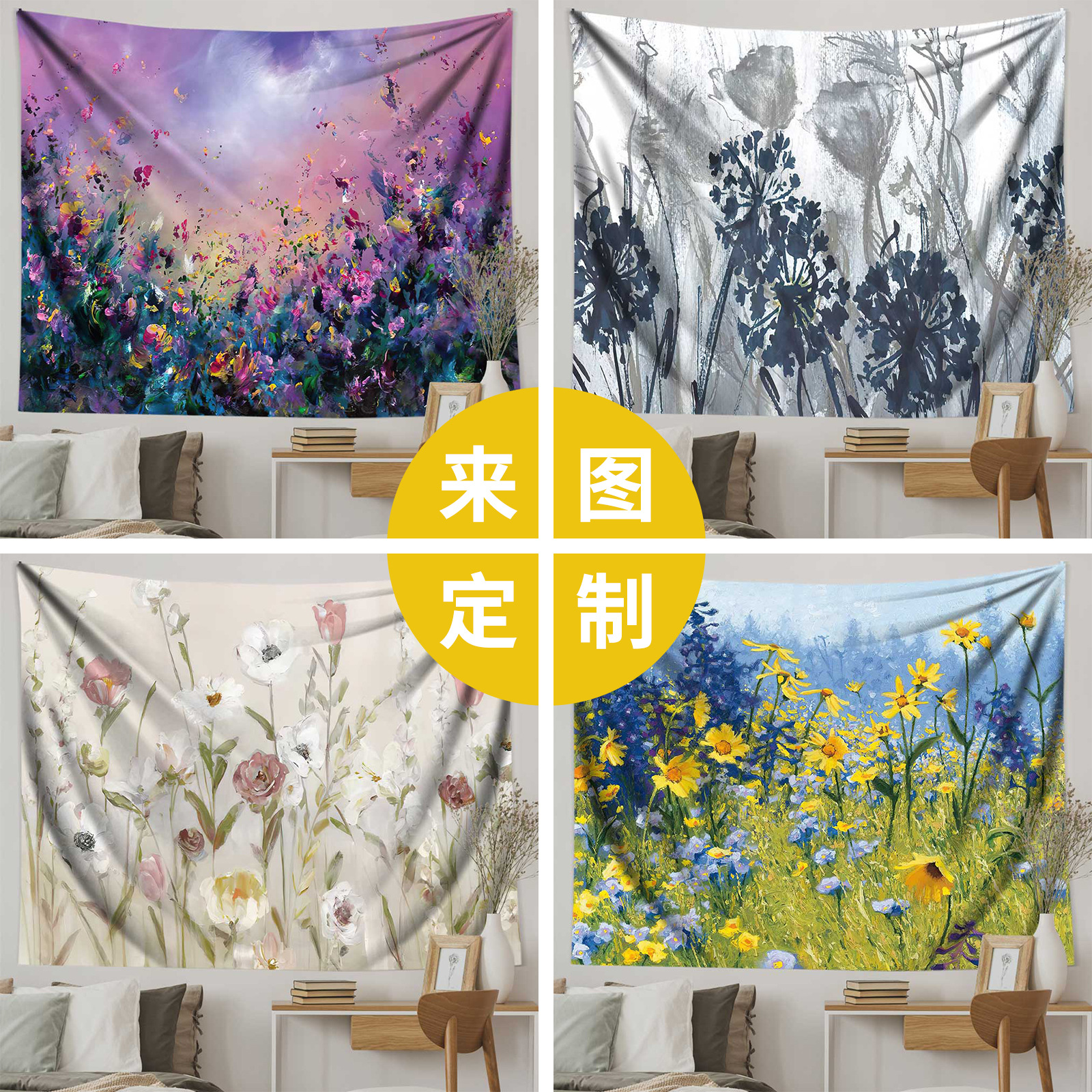 定制亚马逊新品花草手绘艺术鲜花背景布 客厅房间床头出租屋挂毯