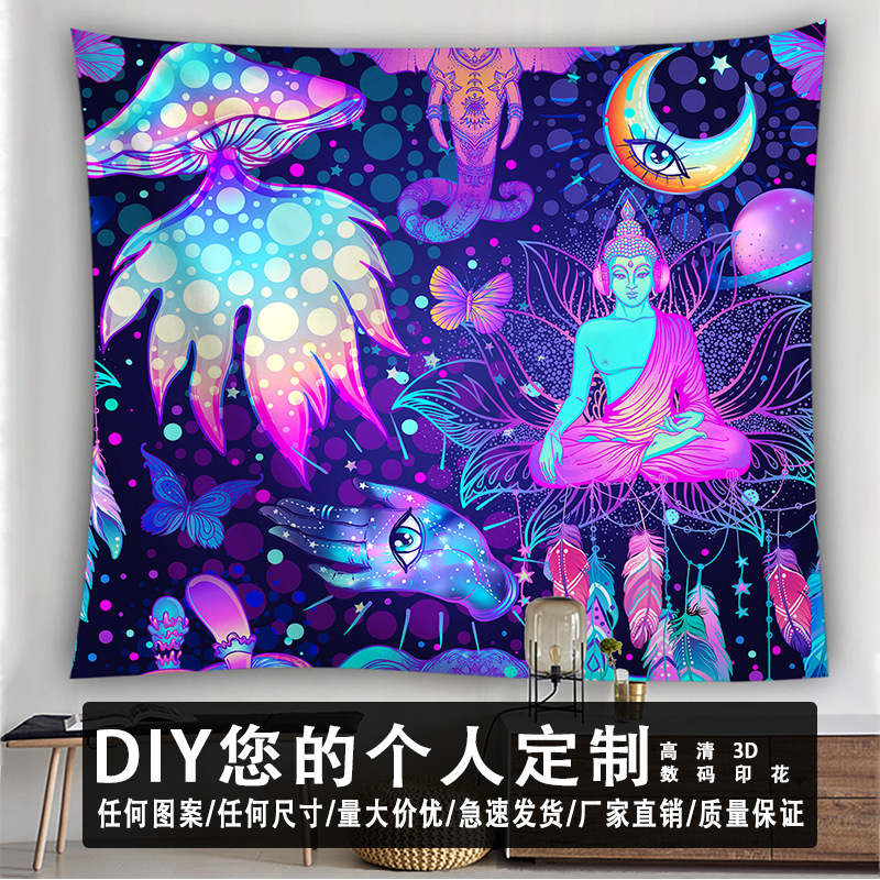 跨境外贸DIY新款印度佛像宗教民族风七彩迷幻森林植物背景挂毯