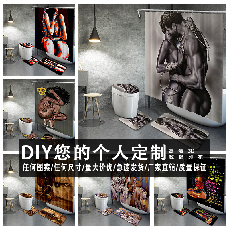 厂家直销新款简约非洲女孩国王防水涤纶浴帘DIY3D印花浴室四件套