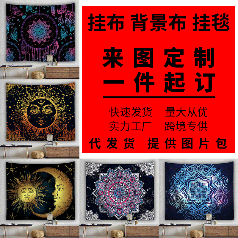新品民族风曼陀罗月亮太阳波西米亚ins风背景布 卧室家居挂布挂毯