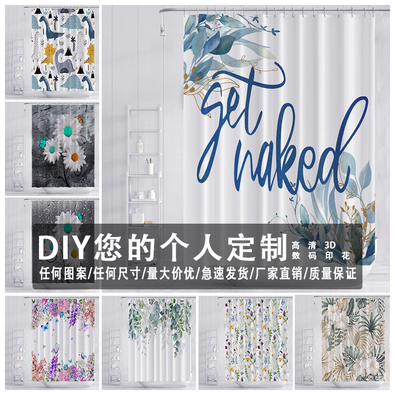 厂家热销跨境亚马逊新品北欧ins绿植鲜花浴帐 加厚防水涤纶浴帘