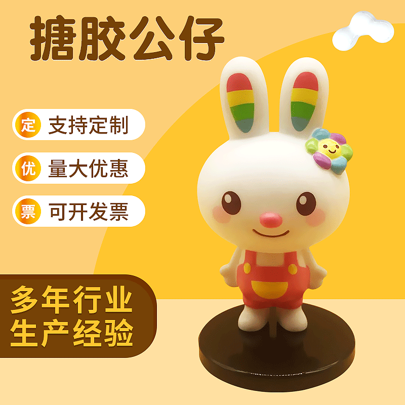 卡通可爱兔子搪胶玩具 公司企业礼品搪胶玩偶摆件来图来样