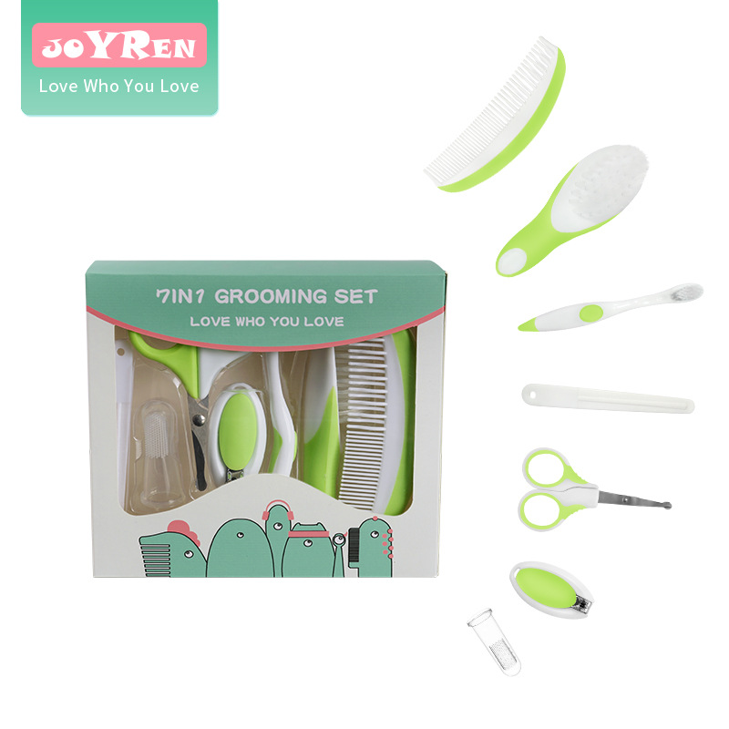 亚马逊爆款婴儿护理修甲洗头工具七件套 宝宝安全指甲剪钳盒装