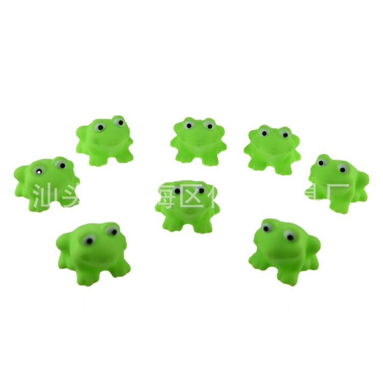 搪胶游泳洗澡吸喷戏水儿童玩具 喷水绿色青蛙造型6只装浴室玩具