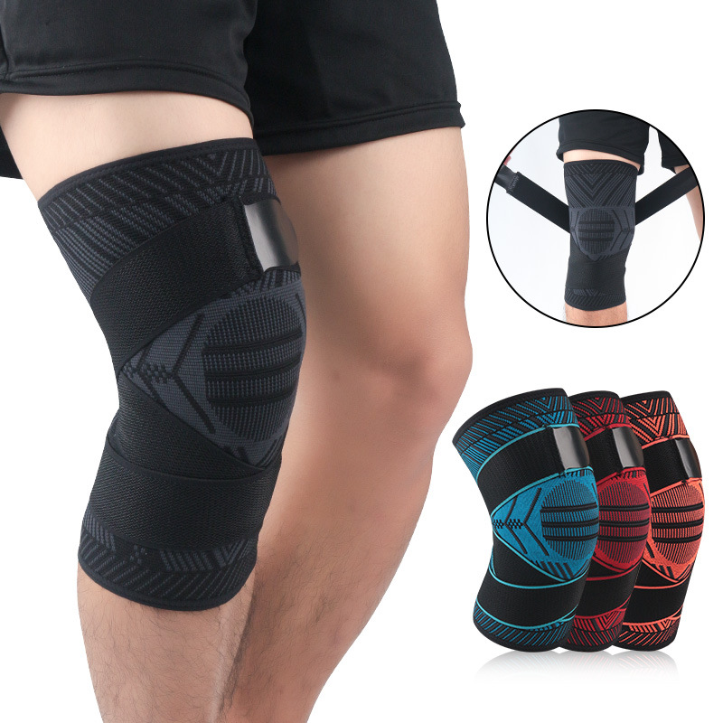 跨境运动护膝盖压缩缠绕弹簧护腿户外篮球登山健身护膝护具可代发