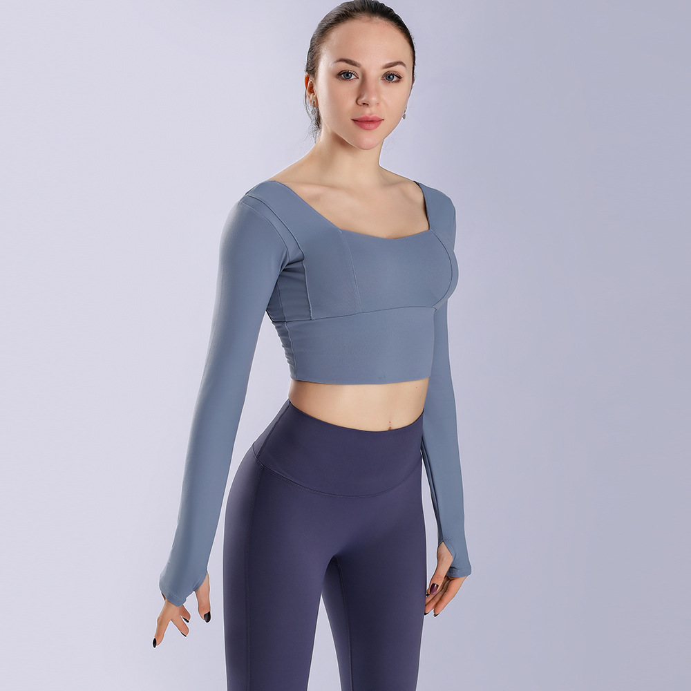 瑜伽上衣紧身显瘦弹力亚马逊秋冬速干瑜伽服长袖运动上衣健身服女