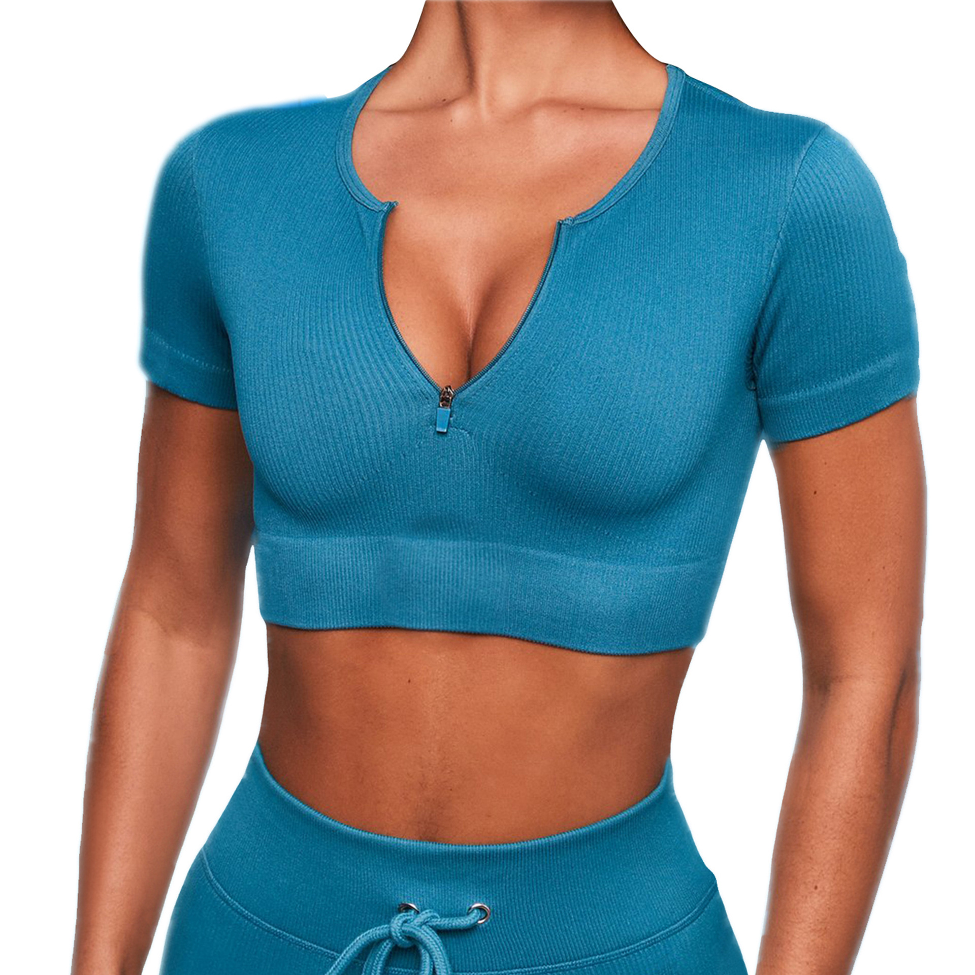 交叉设计短袖运动瑜伽服女跑步健身上衣性感t恤普拉提提臀健身裤