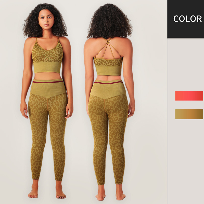 瑜伽服速干秋冬新款无缝豹纹文胸长裤瑜伽服女套装健身服厂家定制
