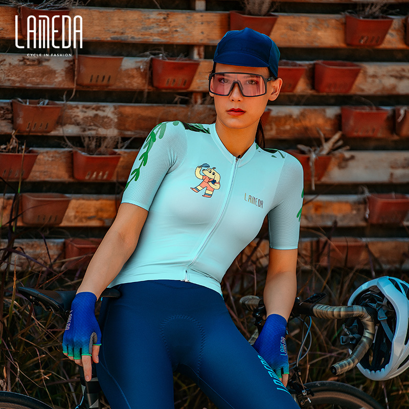 兰帕达新款夏专业骑行短袖女山地自行车透气快干自行车紧身骑行服