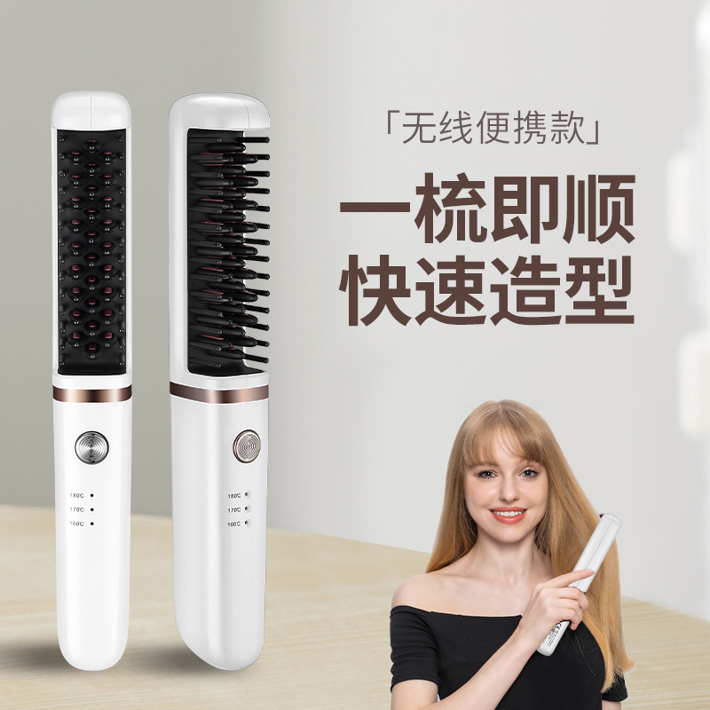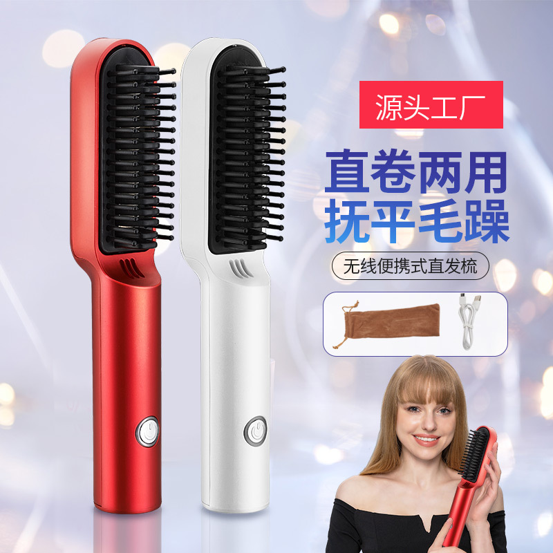 跨境热销迷你直发器 USB无线充电式卷直两用直发梳卷发造型梳