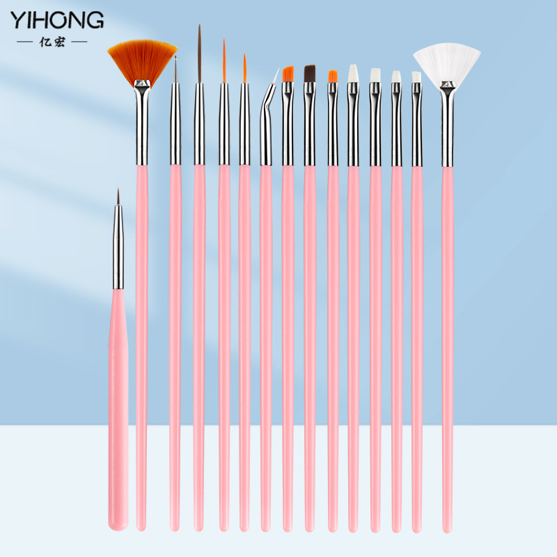 跨境15支美甲笔刷套装拉线笔彩绘笔点钻笔扇形彩绘画花光疗笔套装
