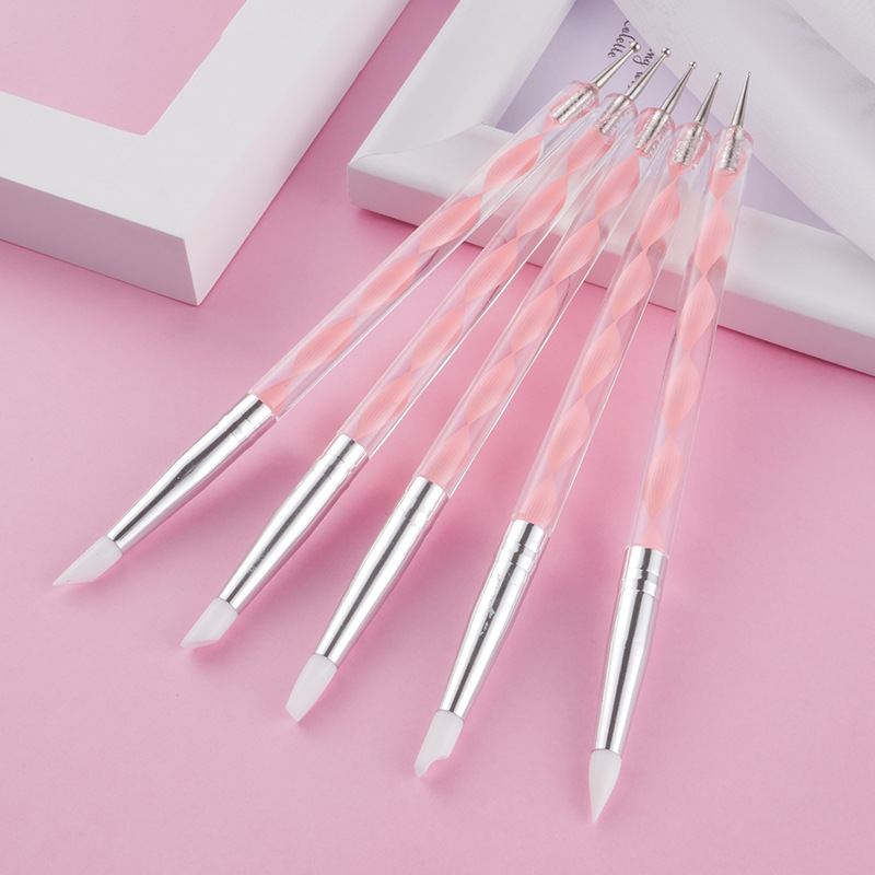 厂家直供 双头硅胶笔硅胶美甲笔5支装压痕笔软陶点钻笔美甲工具