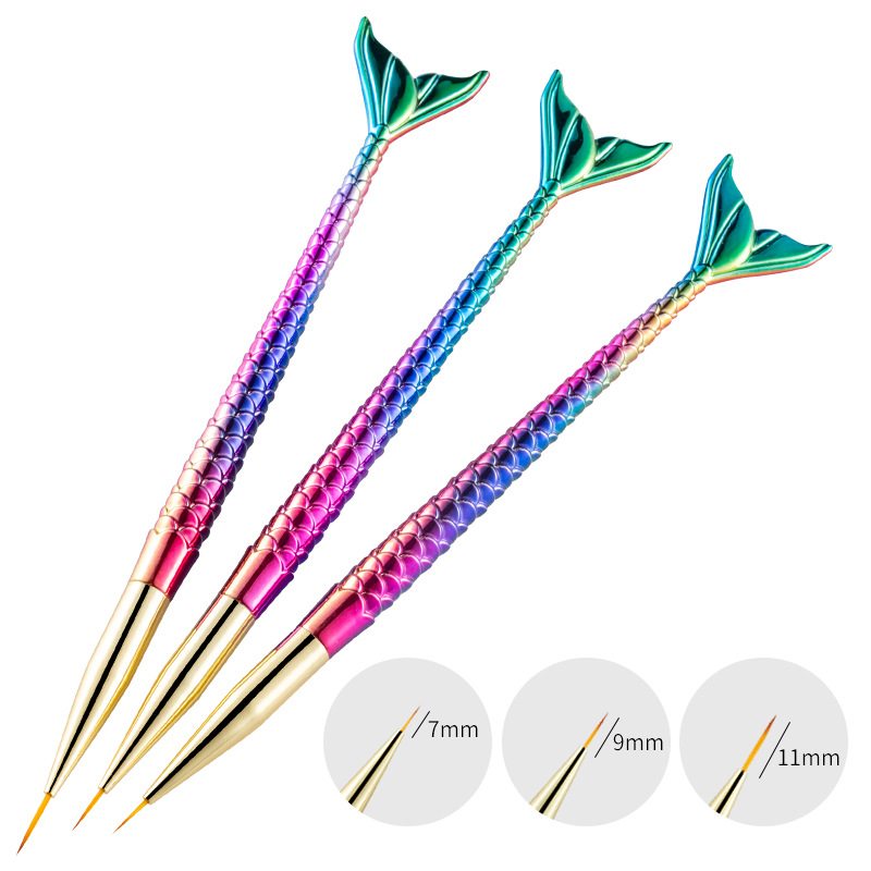 3支套装美甲笔刷 美人鱼渐变笔杆拉线笔彩绘笔画线勾花 美甲工具