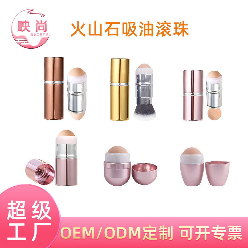 新品火山石吸油滚珠双头火山石吸油棒伸缩粉底刷脸部吸油神器现货