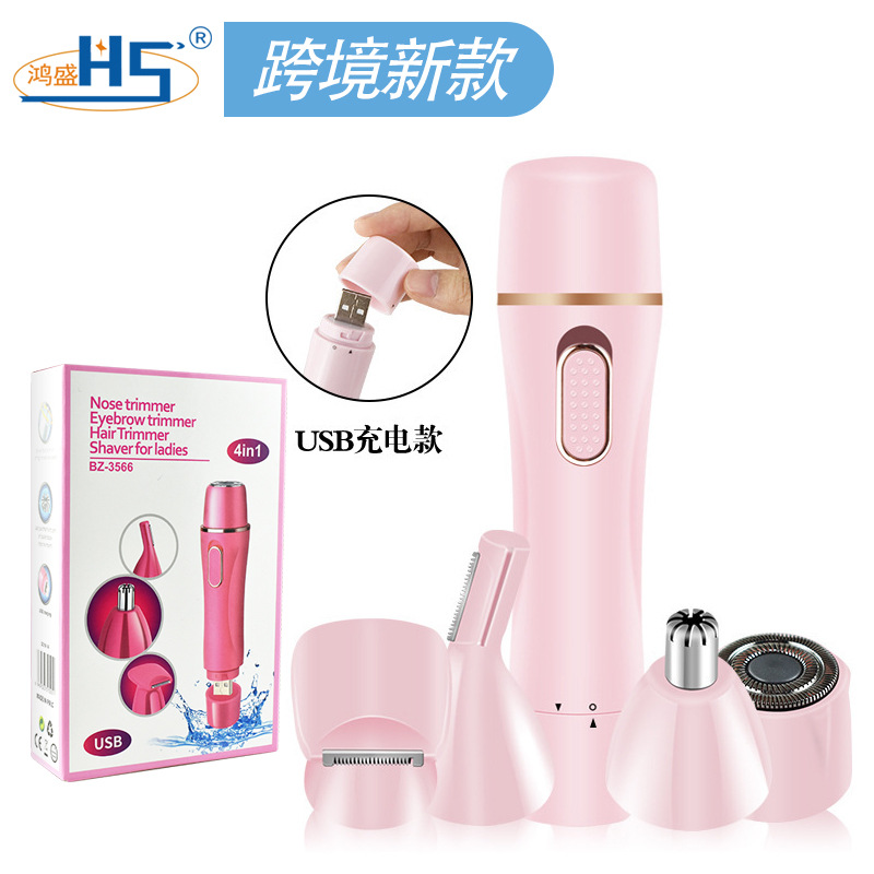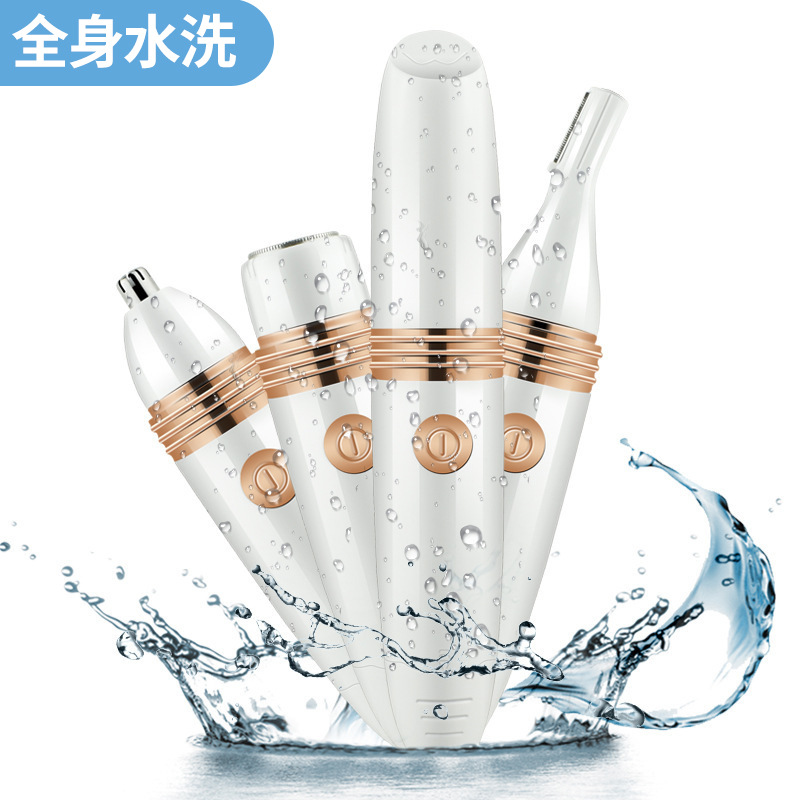 跨境新款4合1电动脱毛器USB充电多功能口红剃毛器全身水洗修眉刀