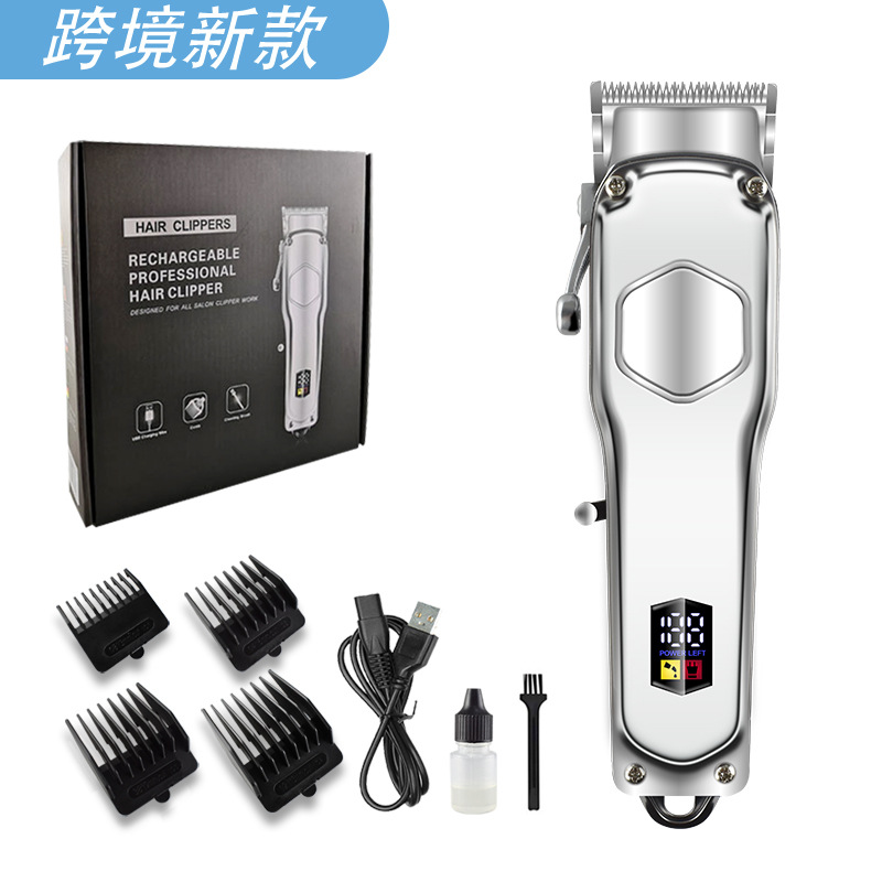 亚马逊新款家用理发器男士电动复古电推剪静音电推子LED电量显示