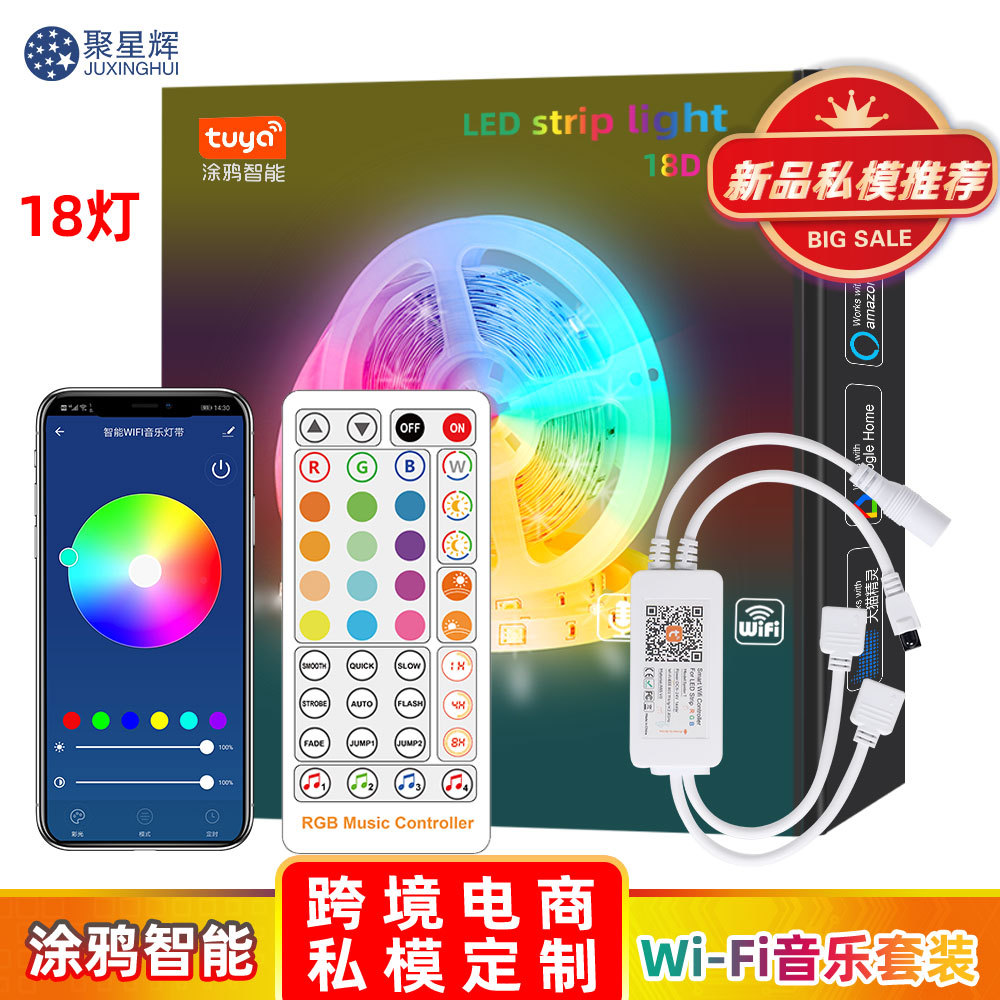 18灯wifi灯带5050灯带LEDWiFi灯条涂鸦智能音乐控制套装APP控制器