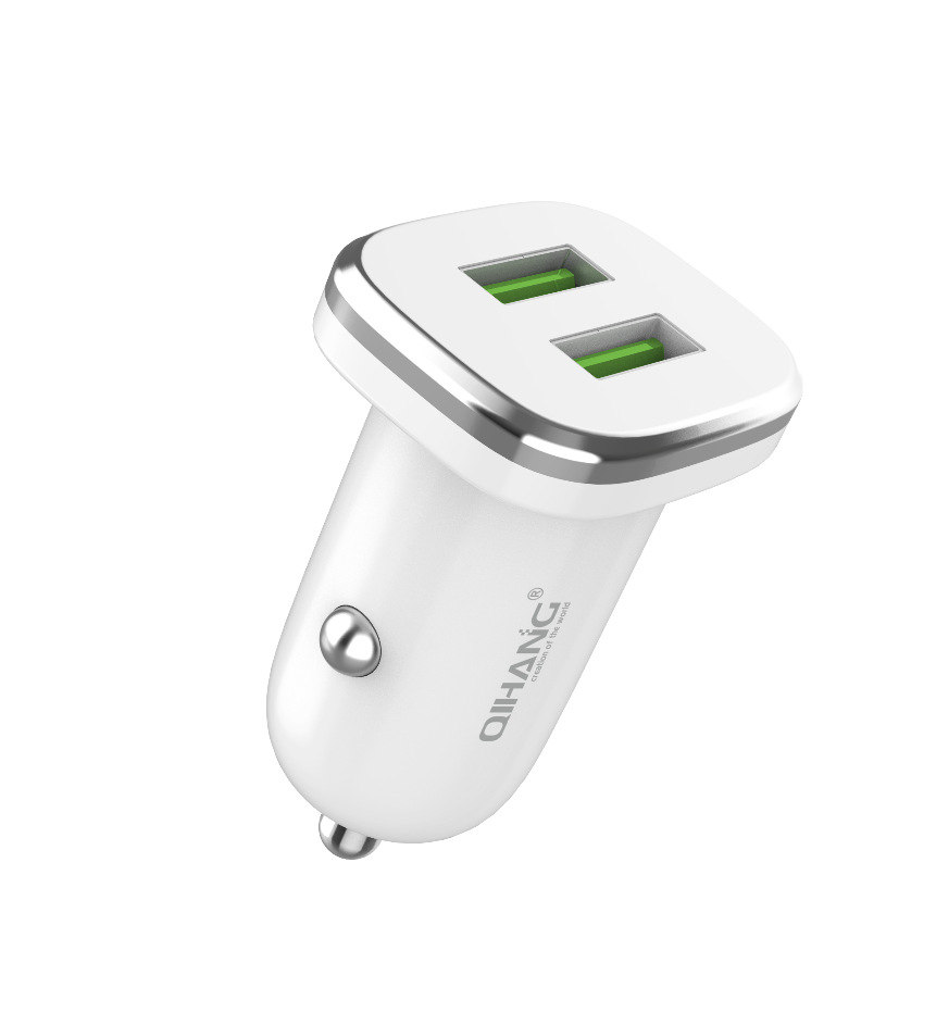 QIHANG 跨境爆款汽车用品双USB口闪充2.4A带数据线车载充电头套装