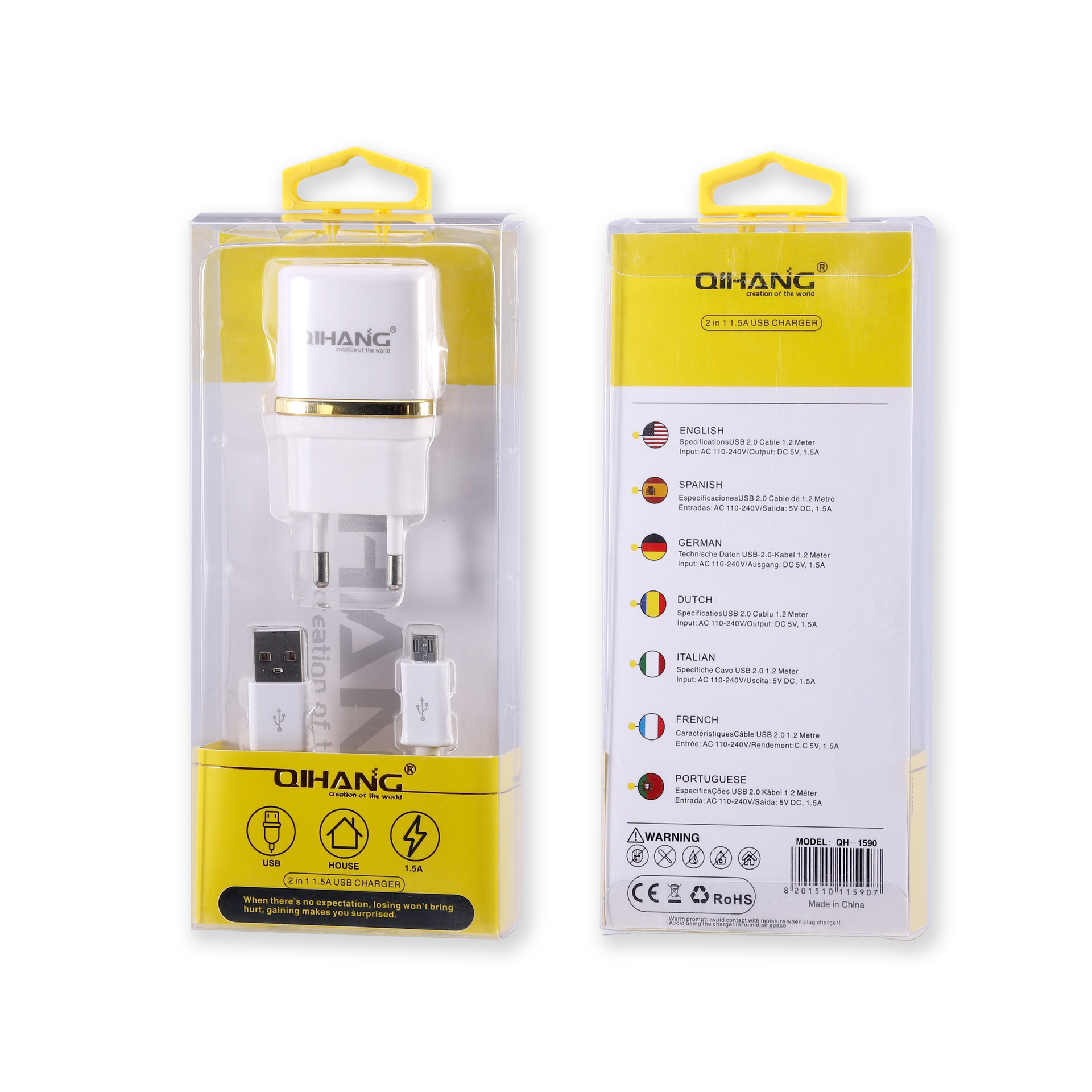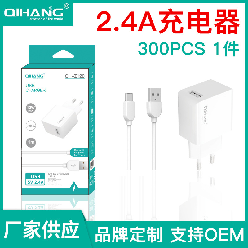 QIHANG 5V2.4A带数据线套装 直充手机平板快充单USB充电头 CE认证