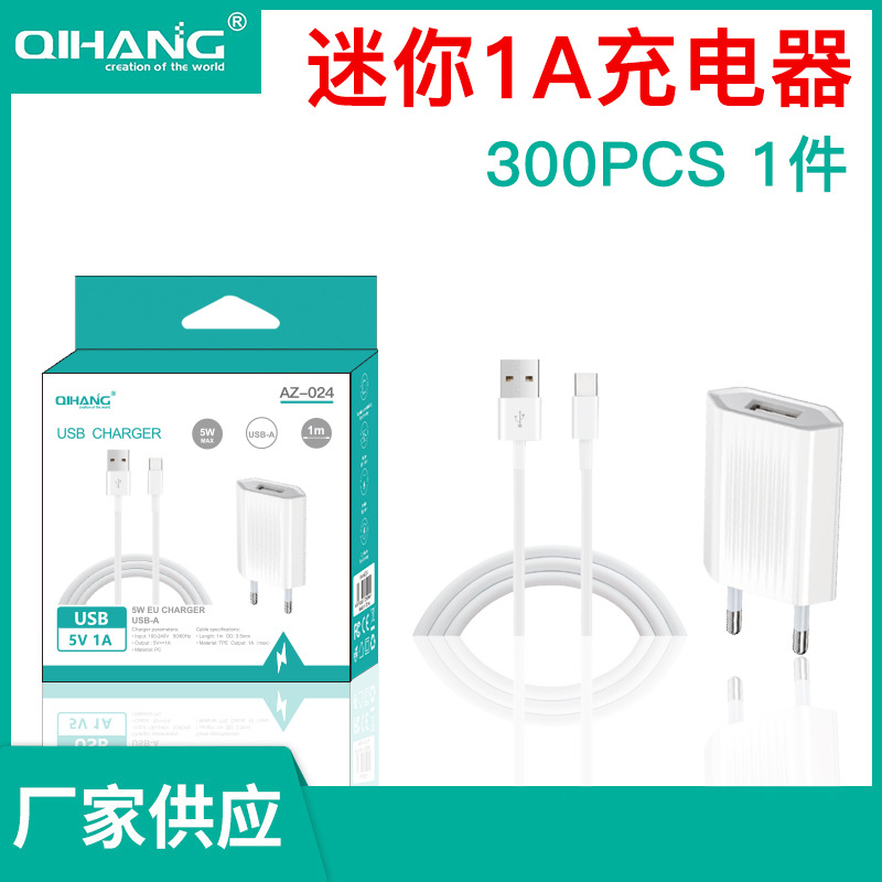 QIHANG 5V1A USB充电器1M数据线套装迷你款便外出携带 可批发中性