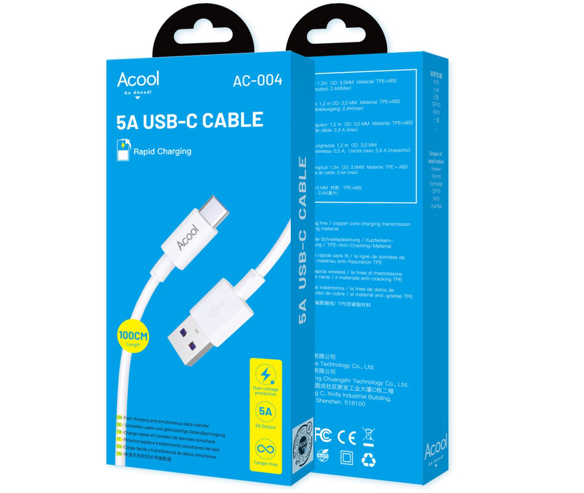 手机充电线AC004快充线5A快充type-c安卓type-c充电线P40快充线