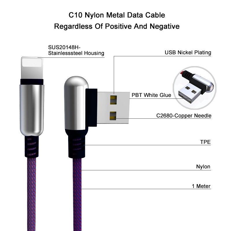 QIHANG 5A快充USB锌合金编织手机数据线 专供外贸 支持印图批发