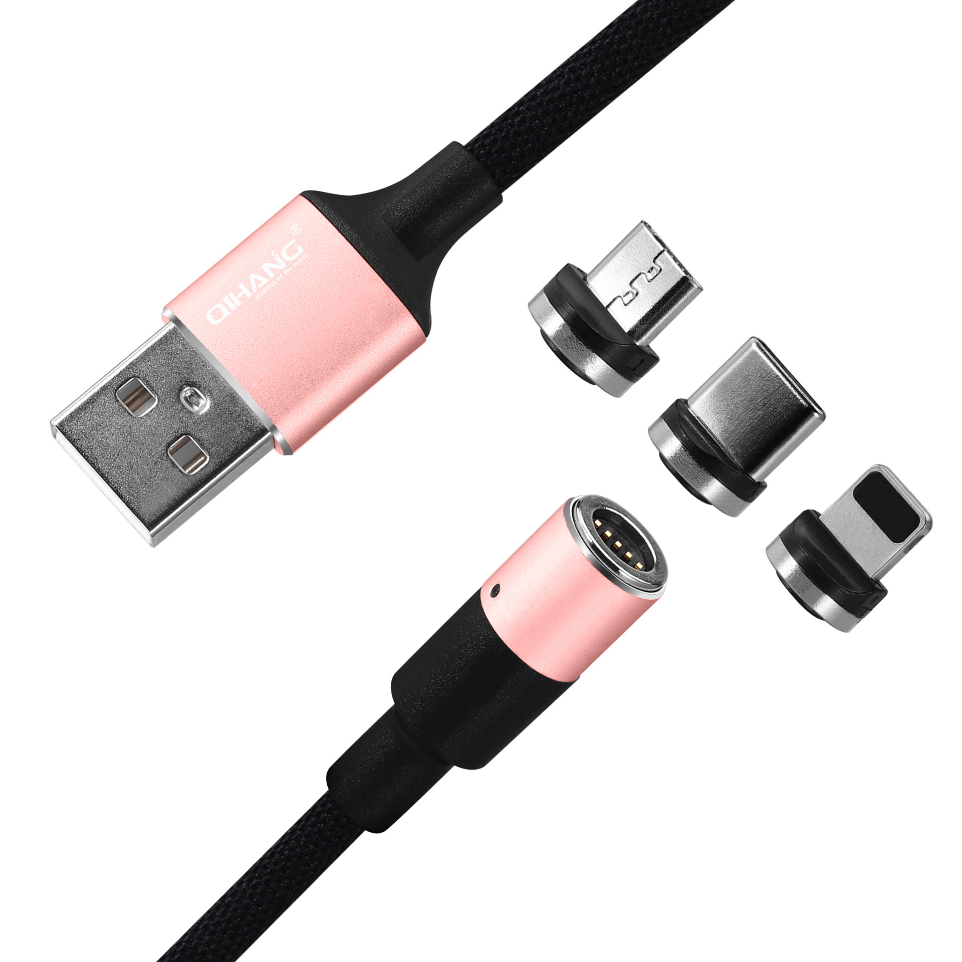 QIHANG 金属三合一快充数据线尼龙编织马卡龙现货批发 厂家可印图