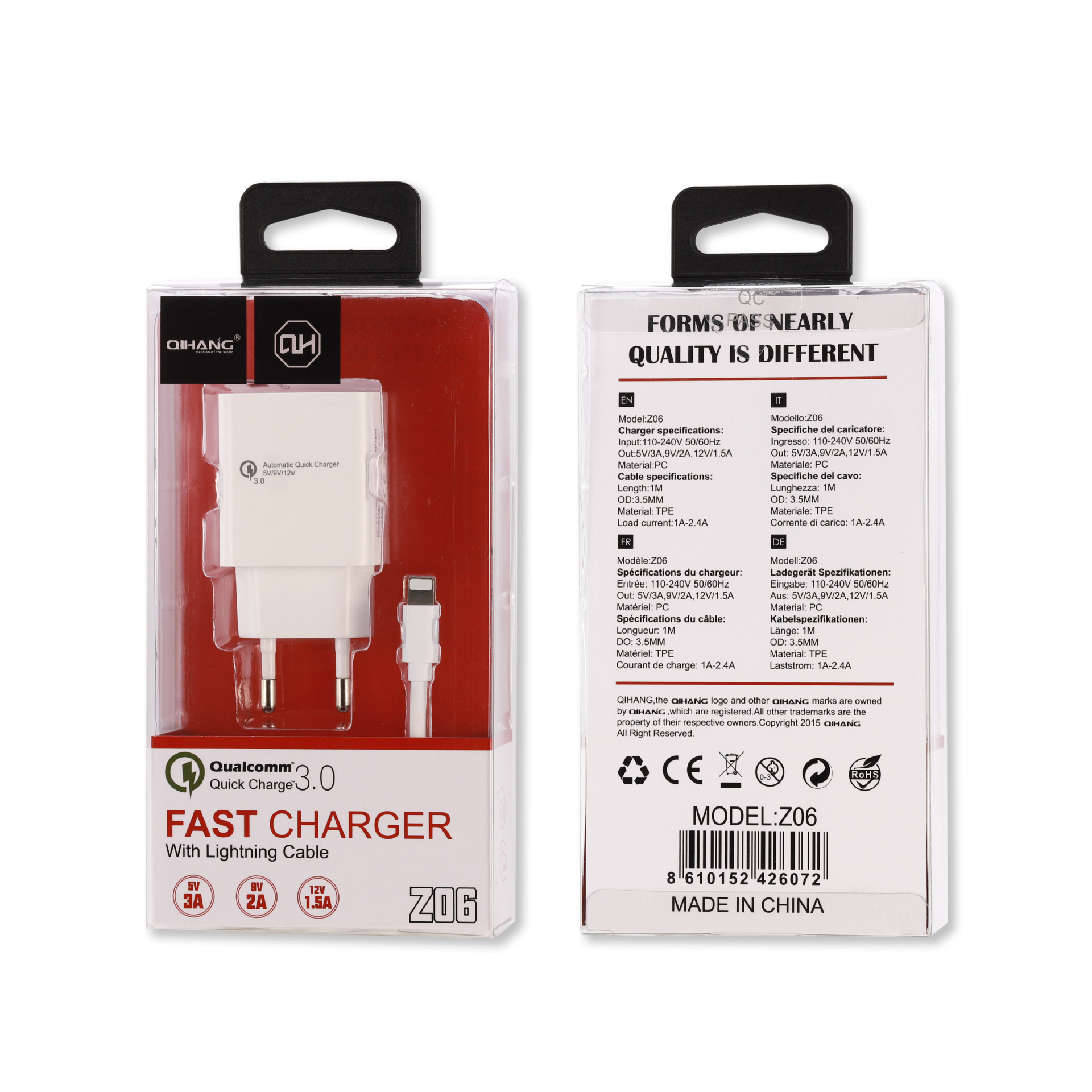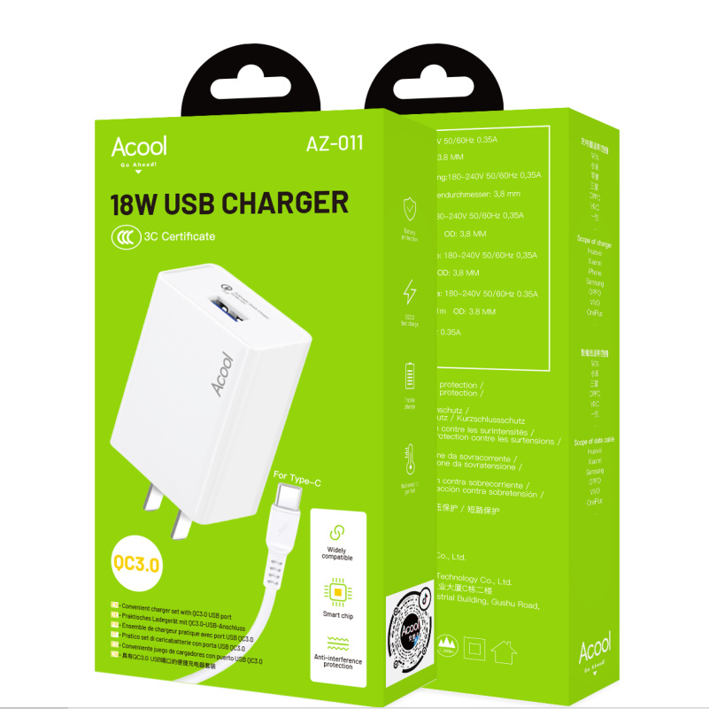 QIHANG充电器套装欧规美规充电插头数据线18WQC3.0快充适配器批发