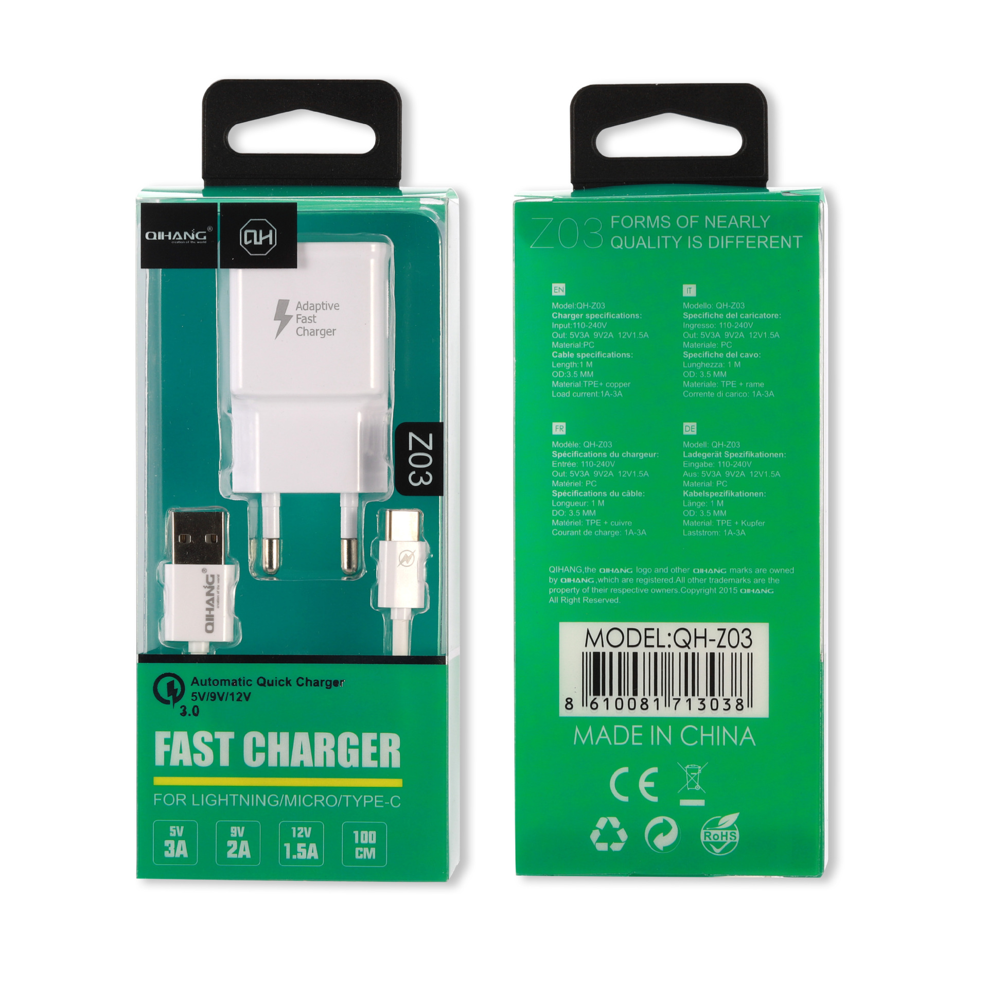 18WQC3.0 单口快充充电器 QC 3.0旅充墙充欧规美规快充充电头