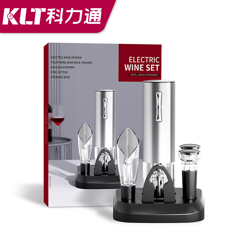 科力通工厂现货科技感不锈钢4合1红酒电动开瓶器套装酒具礼盒套装