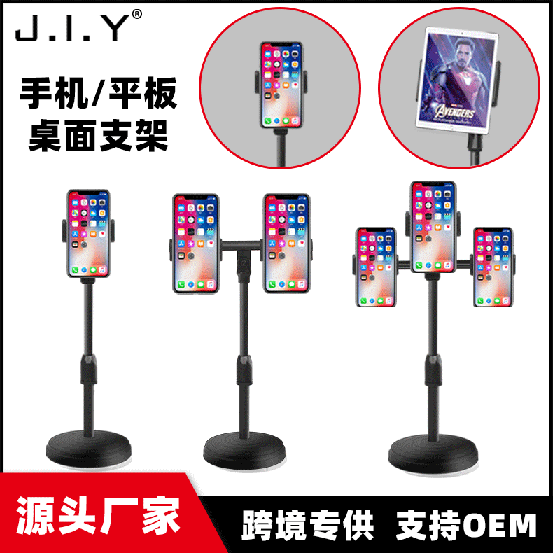 桌面手机支架 直播自拍摄影ipad平板多机位升降伸缩圆盘懒人支架